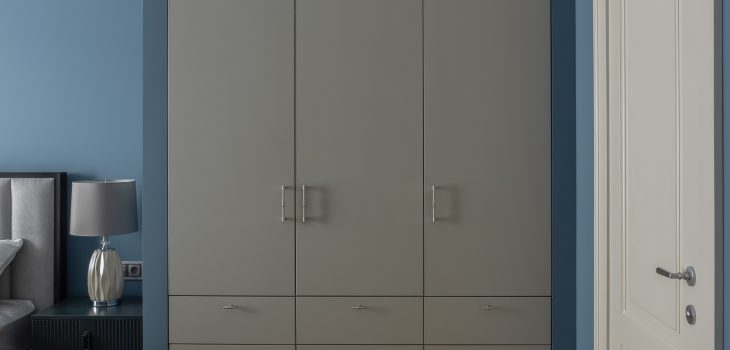 Серый гардеробный шкаф