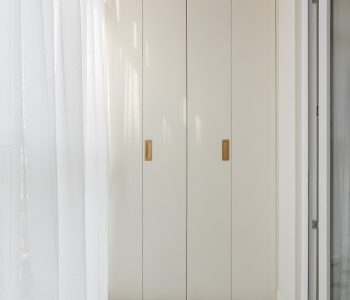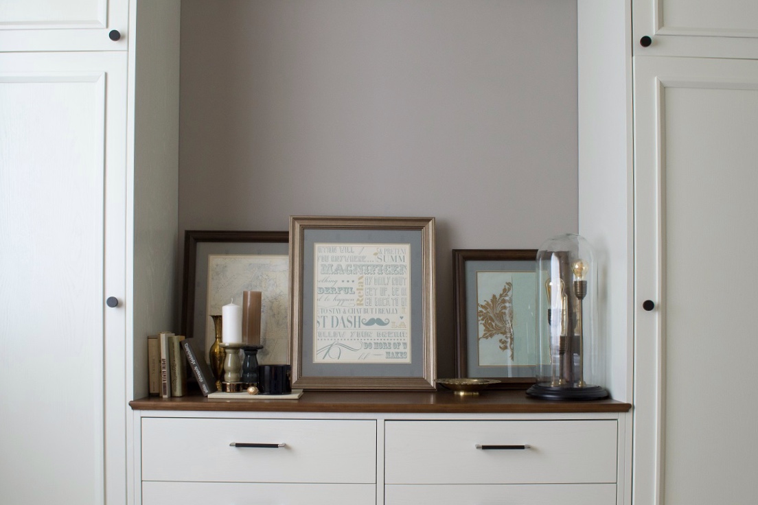 Мебель для хранения в спальне из массива ясеня, покрытая эмалью и лаком. Сочетание белого цвета и цвета натурального дерева характерно для классических интерьеров.