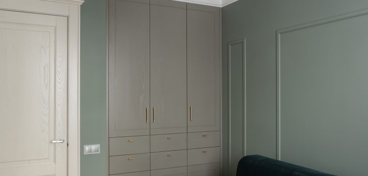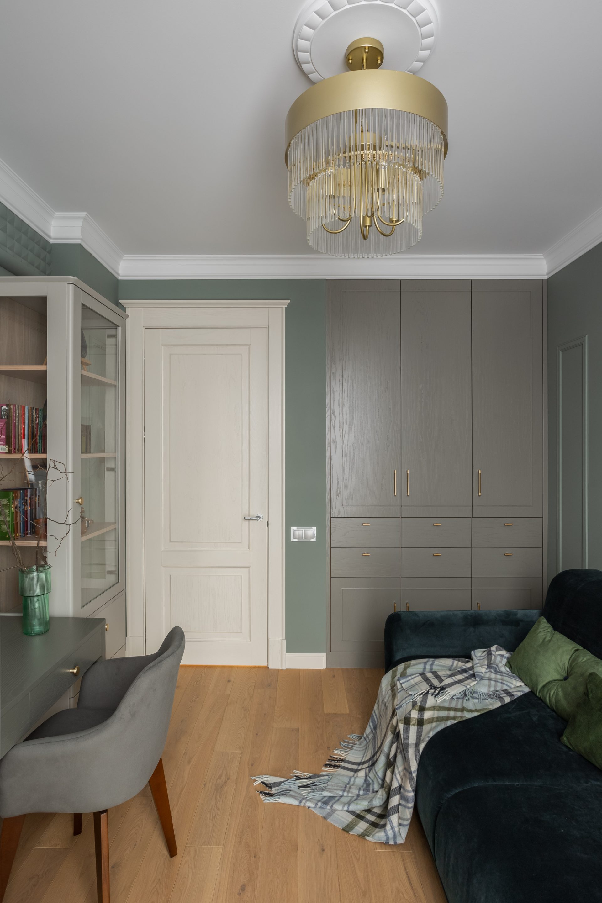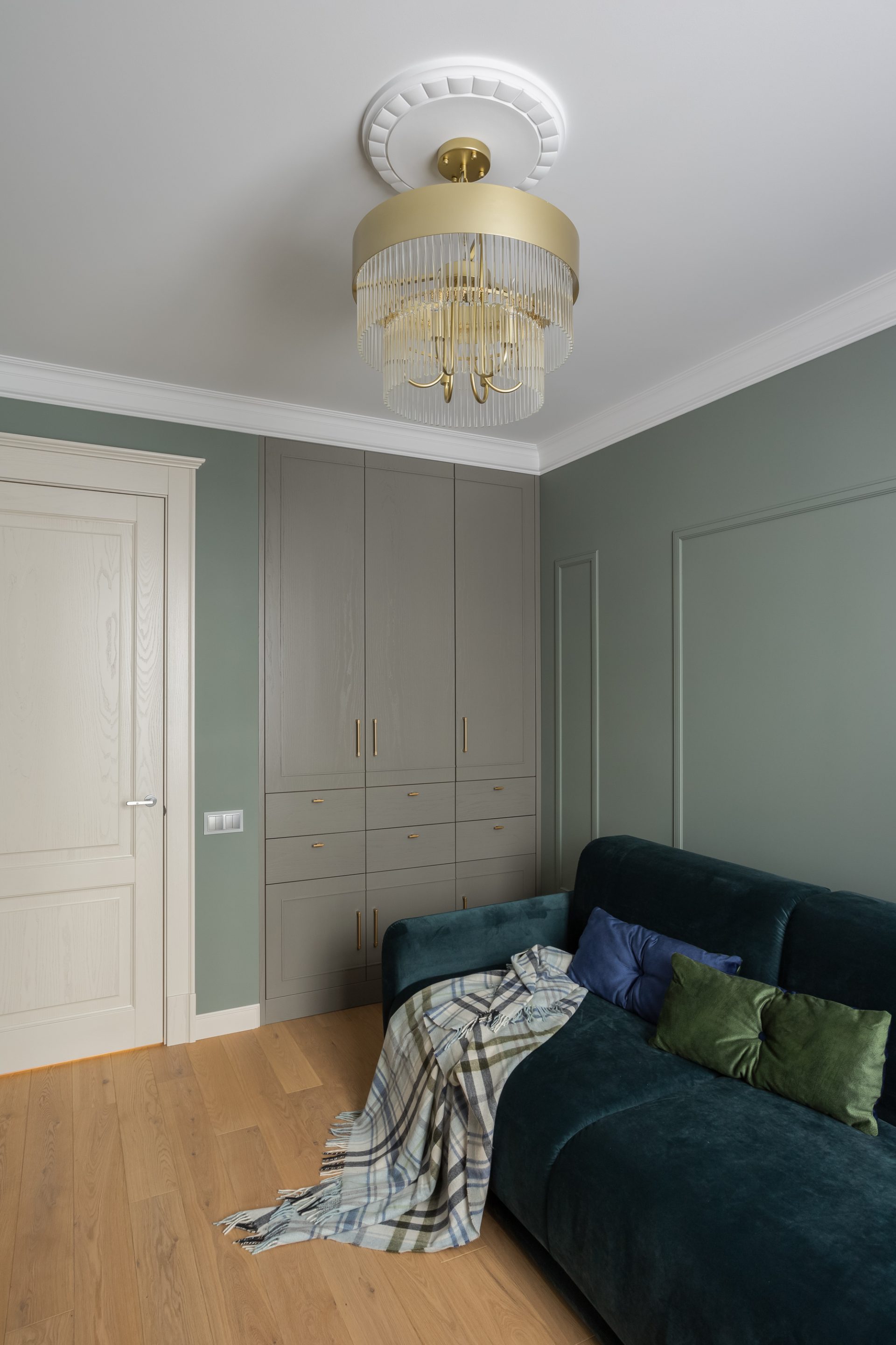 Шкаф из шпонированного МДФ в эмали, в детской комнате с 6-ю выдвижными ящиками, удобен для игрушек и одежды.
